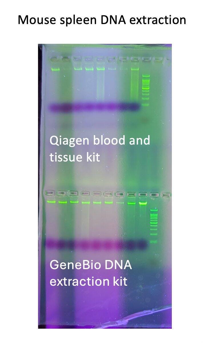 EasyPure® Genomic DNA Kit provides a simple and convenient way to efficiently isolate high-quality genomic DNA from a variety of materials (mammalian cells, tissues, mouse tails, E. coli and yeast) and blood samples from mammals, birds and other animals. Cells and tissues are enzymatically lysed. DNA is specifically bound to silica-based column. The isolated DNA is suitable for PCR, restriction enzyme digestion and Southern blot, etc.