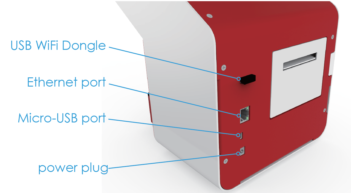 Touch screen, USB, Wi-Fi, ethernet and QR code