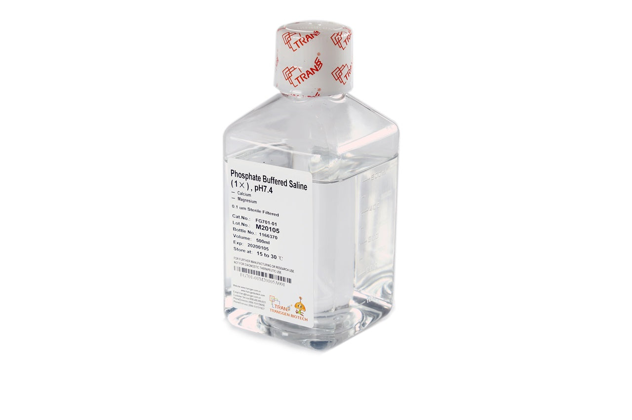 PBS (phosphate buffered saline) contains 1.06 mM KH2PO4 , 155.17 mM NaCl, 2.97 mM Na2HPO4 ( pH 7.4). PBS has been widely used for a variety of cell culture applications, such as washing, dissociation and dilution. PBS is formulated without calcium, magnesium and phenol red. This product has been filter-sterilized.
